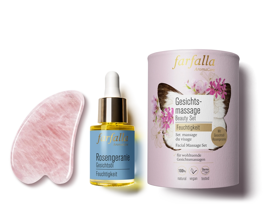 - Beschreibung: Inhalt: 1x Gesichtsöl Rosengeranie 15ml, 1x Gua Sha aus Rosenquarz. Dein entspannendes Ritual für Haut und Seele für einen straffen, strahlenden und gesunden Teint. Perfekt ergänzen sich die fernöstliche Tradition der Gua Sha-Massage und das hautpflegende, regenerierende Gesichtsöl mit dem ätherischen Öl von Rosengeranie. Die sanfte Massage mit dem hautschmeichelnden Rosenquarz aktiviert Durchblutung und Lymphsystem, entspannt die Gesichtsmuskeln, fördert die Aufnahme von Wirkstoffen und unterstützt die Hautregeneration.